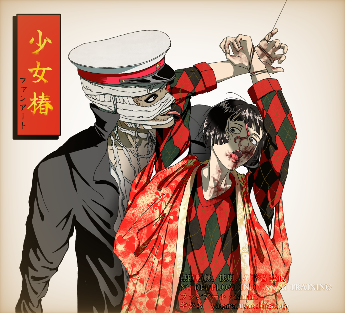 『少女椿』(廻天百眼 舞台『少女椿』)のファンアートを描きました。陰影の付け方ちょっと失敗かな…。背景時間かけて色々考えたけど、どれもしっくりこなかったので結局背景なしにしました。(背景自体は良い感じなので他の絵で再利用するかも)
